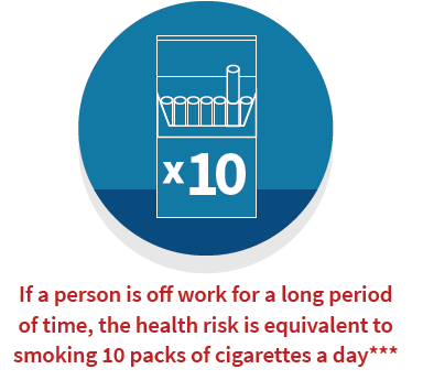 Research shows that being at work is generally good for a person’s health and wellbeing. The associated benefits include physical activity, social contact, daily structure and financial security.*